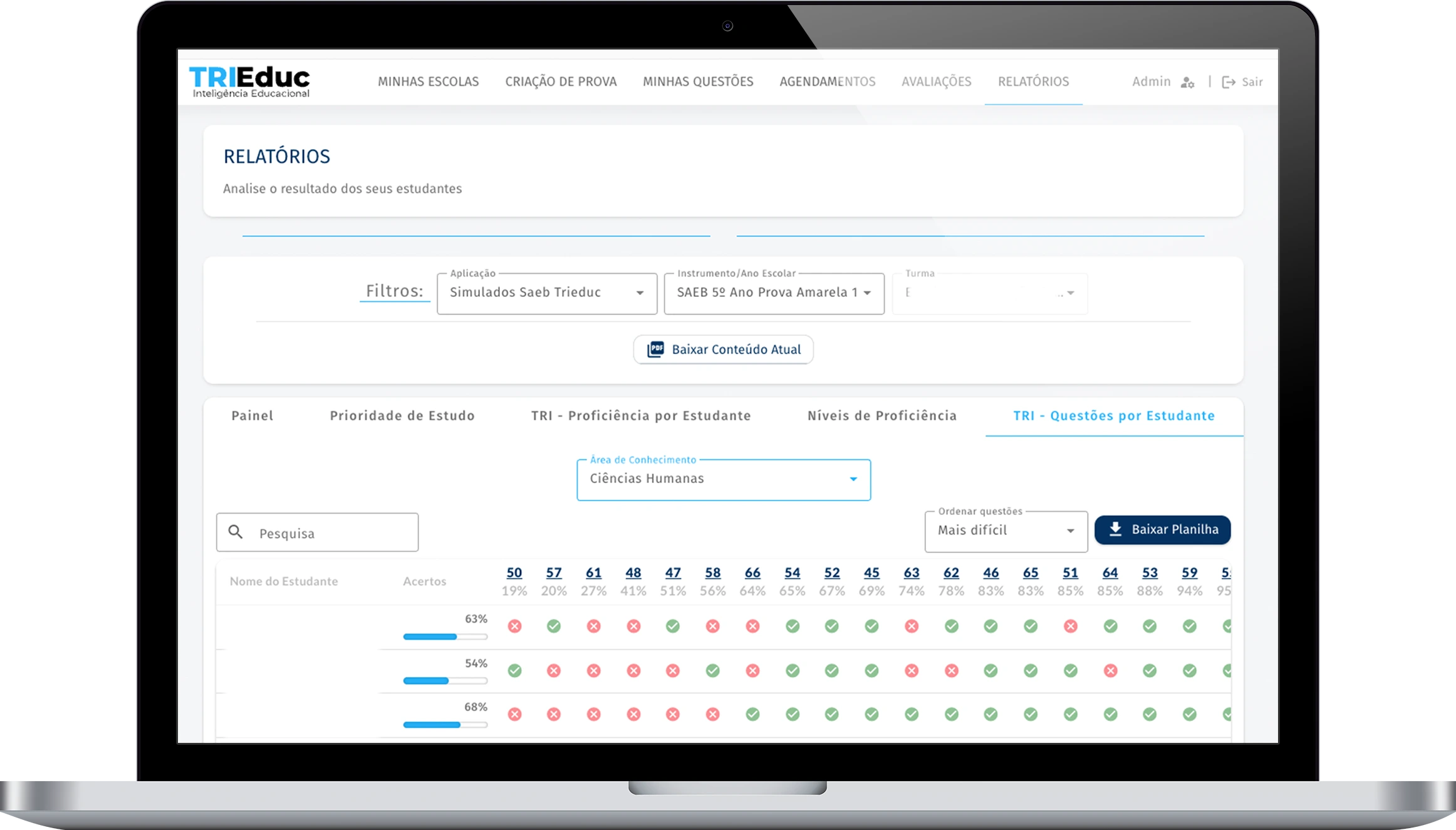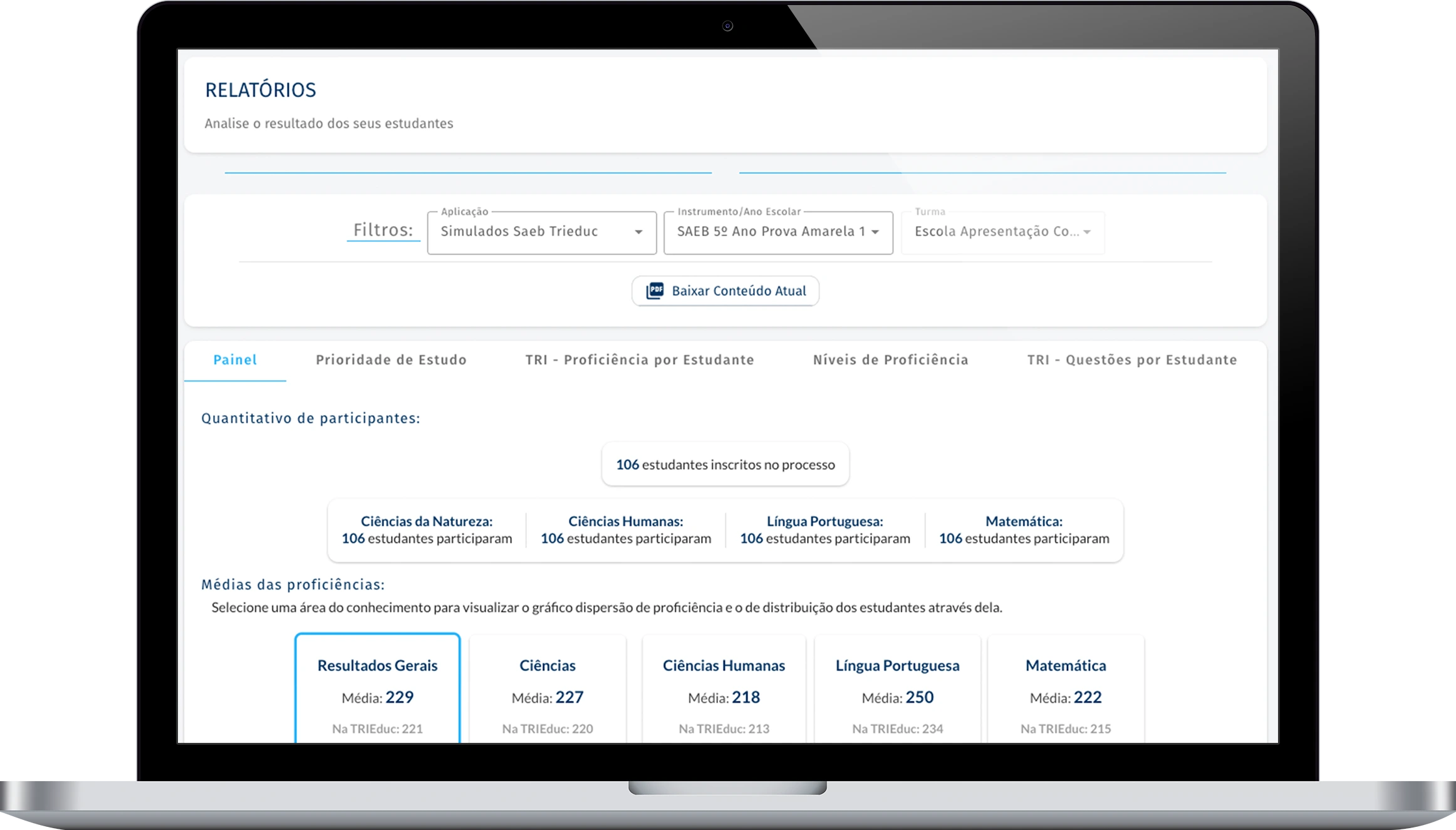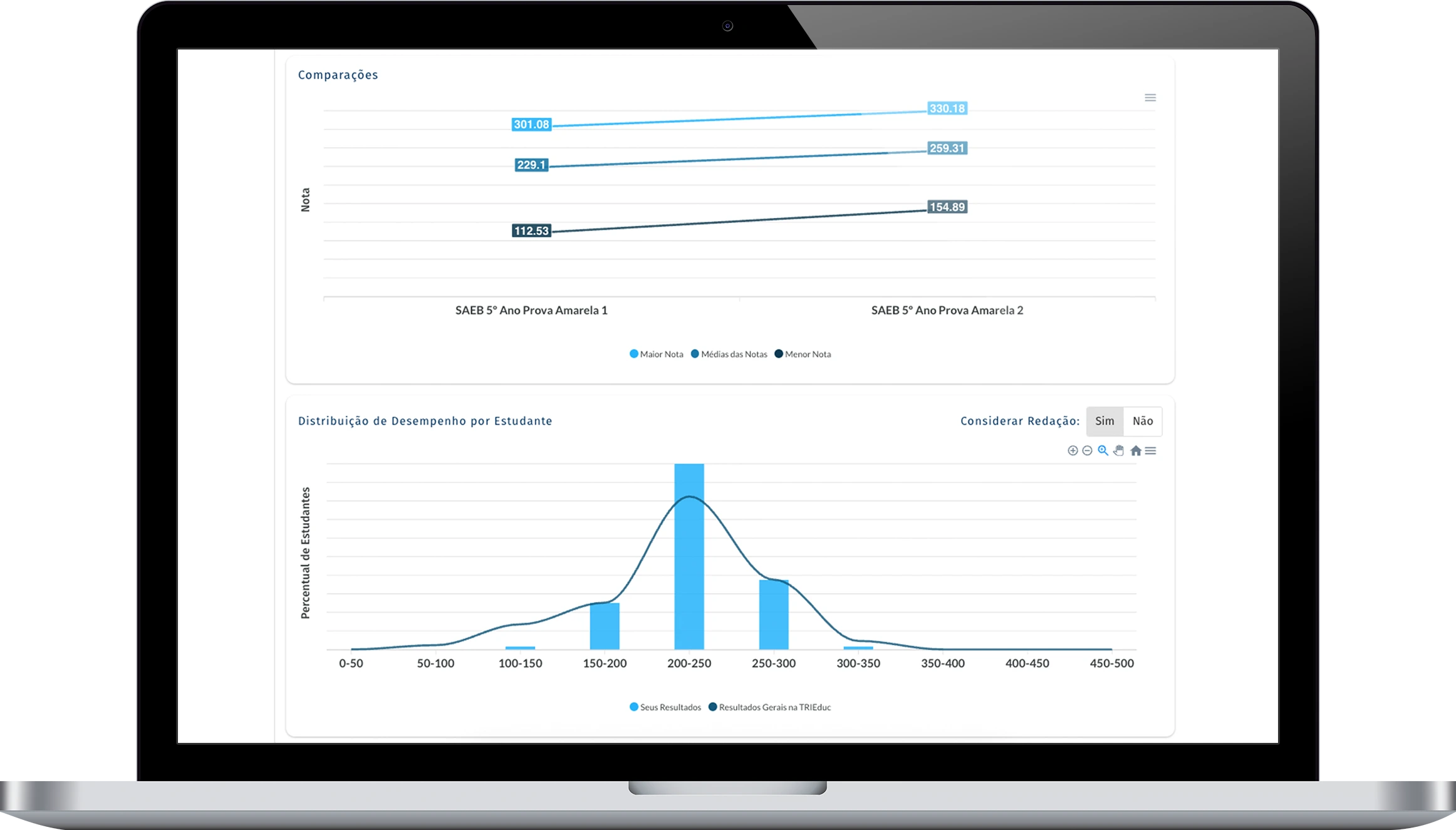 Apresentação do desempenho dos alunos, turmas, escolas e redes de ensino