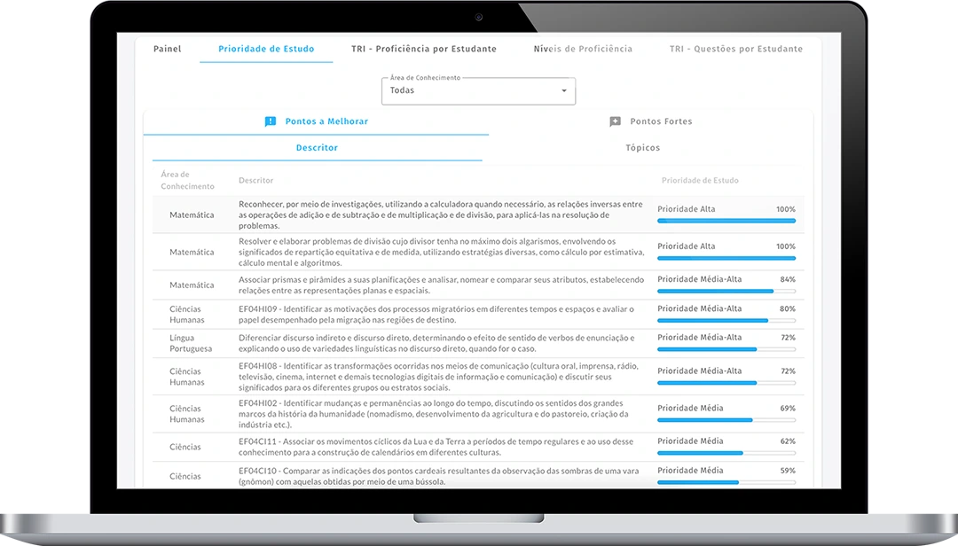 Identifique lacunas e monitore o progresso ao longo do ano letivo dos alunos do 2º ao 9º ano do Ensino Fundamental, nas quatro áreas do conhecimento.
